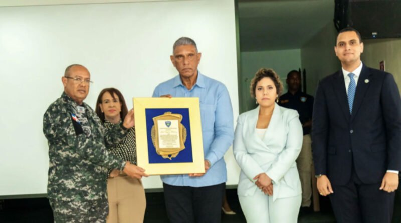 Reza la placa, que lo reconocen: “por su brillante desempeño y sentar precedentes significativos como ministro de Interior y Policía. Realizando aportes sin escatimar esfuerzos en el proceso de reforma, modernización y transformación de la Policía Nacional”.
