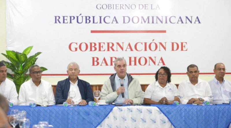 Al encabezar, en Barahona, una Mesa de Trabajo en la Gobernación Provincial, junto con las principales autoridades locales, representantes de los cuerpos de socorro, líderes comunitarios y medios de comunicación, el presidente Abinader informó que se encuentra en la provincia evaluando los daños ocasionados por las lluvias que han afectado durante varios días a la región Enriquillo, impactando severamente sectores como la agricultura, las vías de comunicación, especialmente los caminos vecinales, el comercio y la producción agrícola.