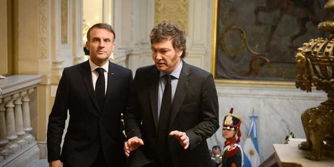 Buenos Aires.-El presidente francés, Emmanuel Macron, dejó claro a su par argentino, Javier Milei, que no firmará el acuerdo comercial entre la Unión Europea (UE) y Mercosur “tal como está”, por lo que pidió renegociarlo, además se interesó por el litio argentino y puso el foco en la tecnología, la innovación y la defensa.