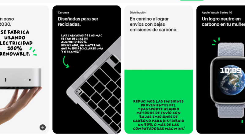 Apple ha reafirmado su compromiso con la sostenibilidad ambiental al lanzar productos fabricados con materiales reciclados. La empresa utiliza aluminio y plásticos reciclados en dispositivos como el iPhone, iPad y MacBook, reduciendo significativamente el impacto ambiental de su producción. Además, Apple ha establecido la meta de lograr que sus productos sean 100% neutros en carbono para 2030, integrando prácticas ecológicas en toda su cadena de suministro.