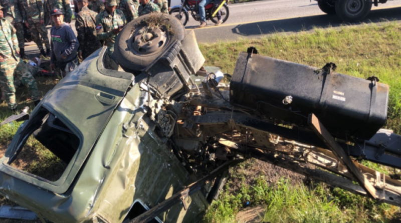 La información fue suministrada por el corresponsal de N Digital, José Adriano Rodríguez, vía Robert Sánchez, donde se reportó que el impacto de una patana, un camión militar impactó de frente con una guagua del transporte escolar. Los niños están ilesos y hay dos adultos con heridas leves.