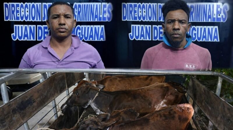 Los detenidos fueron identificados como Rosendo Mesa Mateo, alias “Medina”, de 39 años, y José Manuel Méndez de los Santos, alias “Papito”, de 46, quienes fueron arrestados tras una labor de seguimiento a una denuncia de robo de ganado.